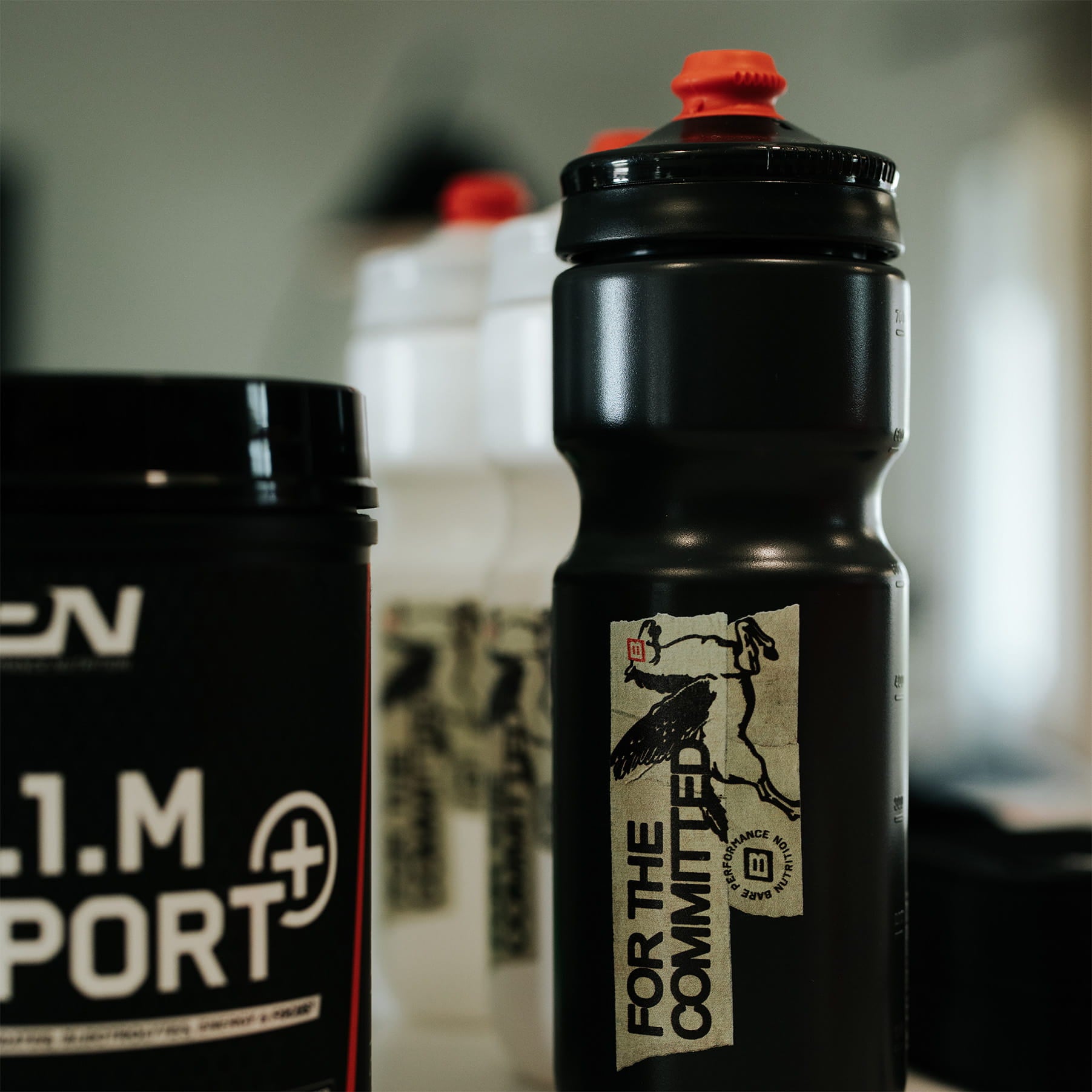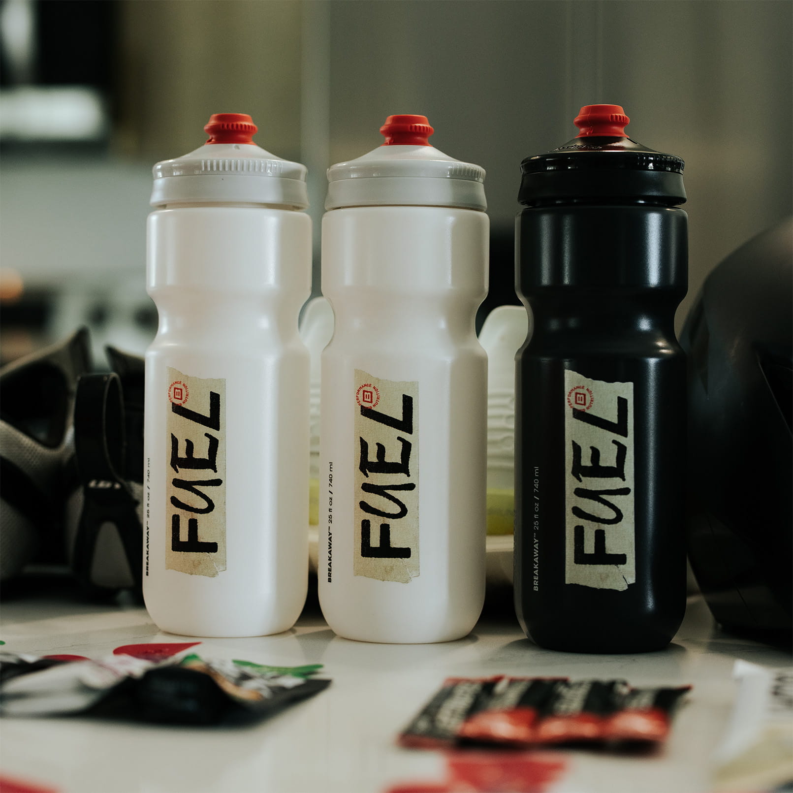 This water bottle is an official HydraPak water bottle. It has "fuel for the committed" on one side and "fuel" on the other.
